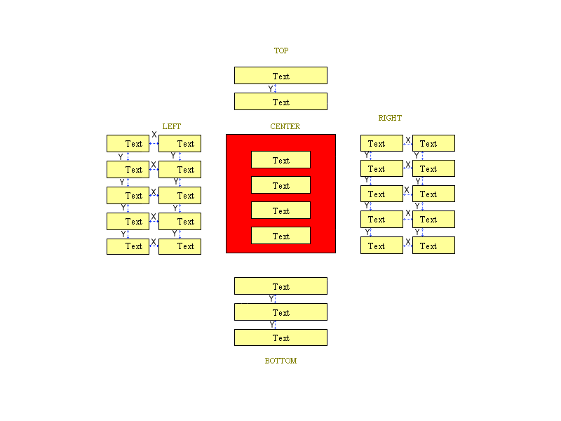 Text spacing is the spacing between the text labels in each region (center, top, bottom, left, right). Y is the vertical spacing between each two adjacent text labels in a column. X is the horizontal spacing between each two columns of the same region.
