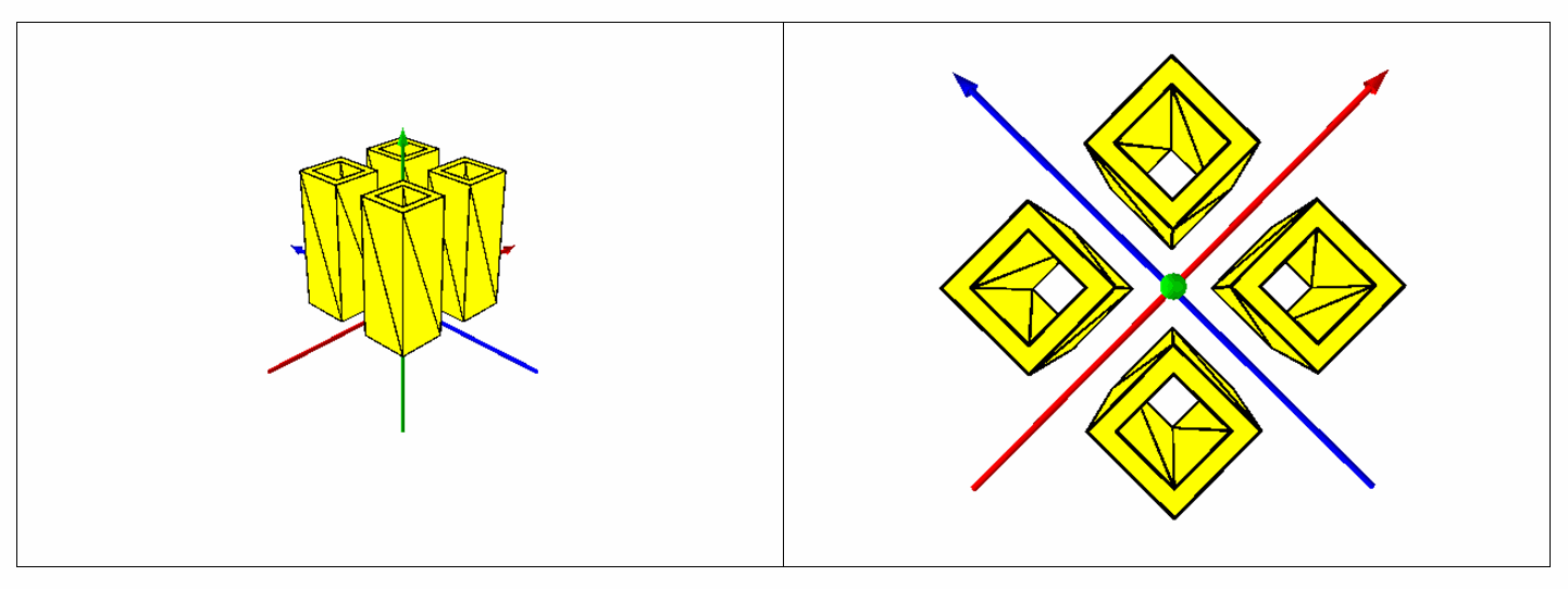 //Extrusion: 2D Polygon Composed Of Multiple Square Shaped Exterior Rings And Corresponding Interior Rings,