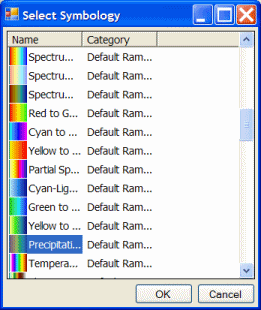 A style is composed of several style items. These style items provide access to individual map elements and symbols. Style items are organized into style classes, which are types of style items. A style class may have several groups of items organized into categories. For example, Precipitation is a style item that belongs to the Color Ramps style class and the Default Ramps category.
